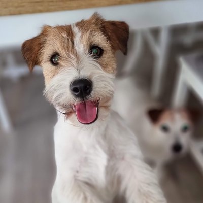 biało-brązowa, szorstka, niewielka suczka z niesamowicie spokojnym charakterem aczkolwiek z całkiem sporym instynktem łowiecki ;)