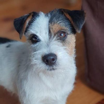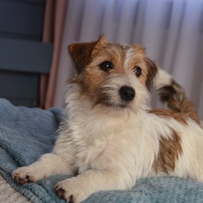 biało-brązowa, szorstka, niewielka suczka z niesamowicie spokojnym charakterem aczkolwiek z całkiem sporym instynktem łowiecki ;)